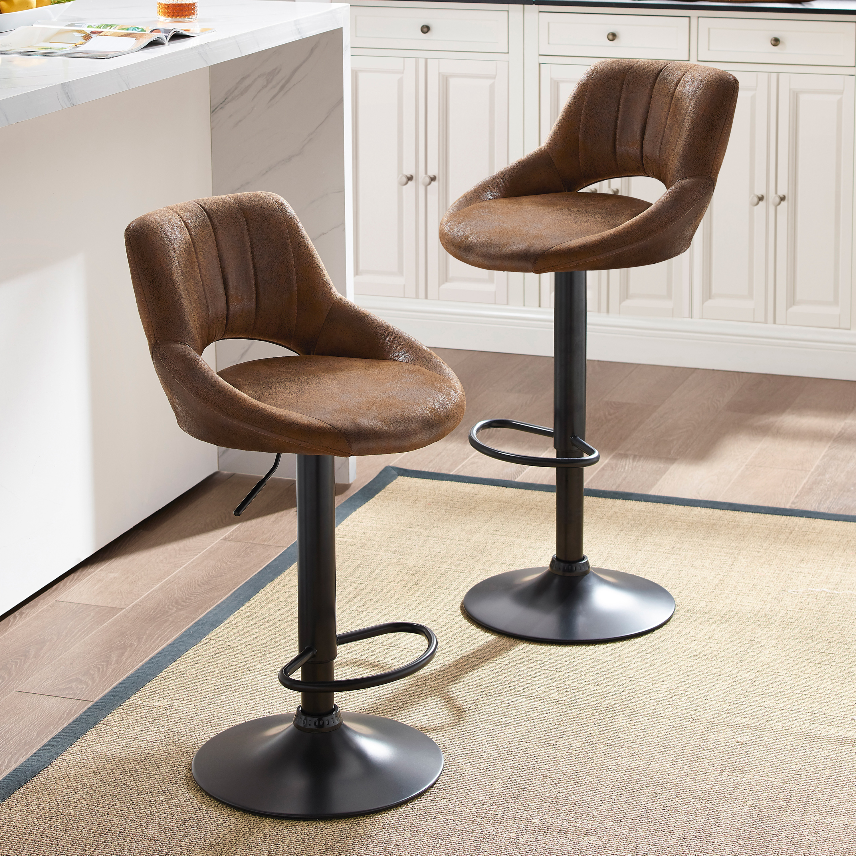 Art Leon Modern Adjustable 360 Swivel Bar Stools With Retro Pu Leather Open Backrest Brown Set Of 2